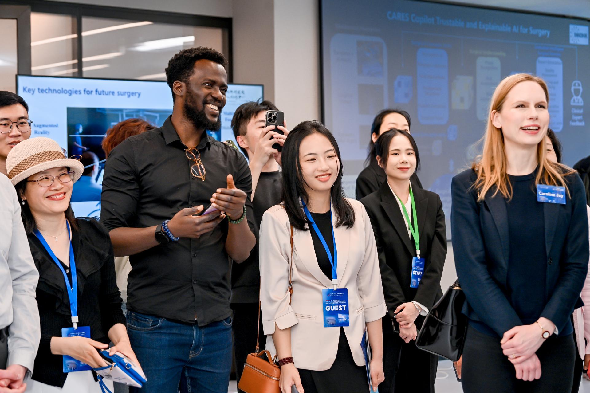 Director Liu emphasized the importance of AI and robotic technology in advancing minimally invasive and intelligent medical practices. He mentioned that as a unique R&D institution, CAIR will join hands with scientists around the world to contribute to human health. Commissioner Lee highlighted that Hong Kong's first two InnoHK clusters have already strengthened cooperation with global scientific research institutions. He anticipated that future innovation platforms will continue this momentum and expressed congratulations on the interim achievements made by the collaboration between CAIR-CAS and King’s College London. Mr. Duncan Chiu, a member of Hong Kong Legislative Council and President of the Hong Kong Information Technology Joint Council, also attended and delivered a speech. He elaborated on his policy initiatives in areas like VC funding for innovation startups, talent acquisition, and the labor market, to meet the strategic needs of Hong Kong becoming a technological innovation hub.