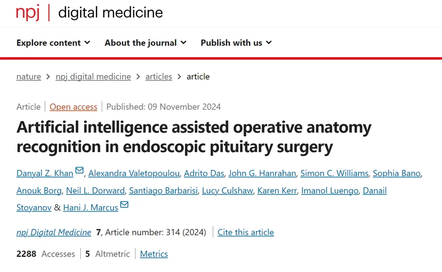 四、Nature子刊报道:内镜垂体手术的AI辅助解剖识别