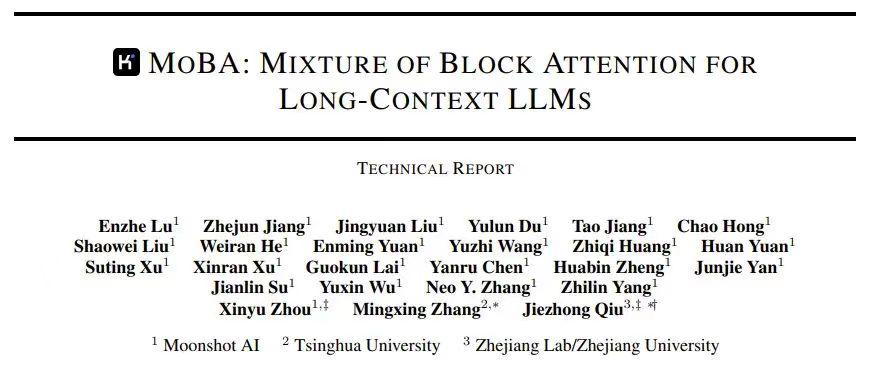 2月18日,就在NSA发布的同一天,月之暗面也发布了一篇内容为MoBA(块注意力混合)的注意力机制的论文,月之暗面创始人兼 CEO 杨植麟为该论文作者之一。这一架构基于混合专家(MoE)技术和稀疏注意力技术,允许模型动态选择与每个查询 token 相关的历史关键块和值块,提高了性能和效率,这对于涉及大量上下文信息的任务尤为有益。