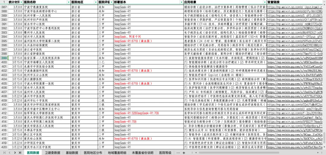 五、AI+医疗,DeepSeek赋能420余家医院最新数据
