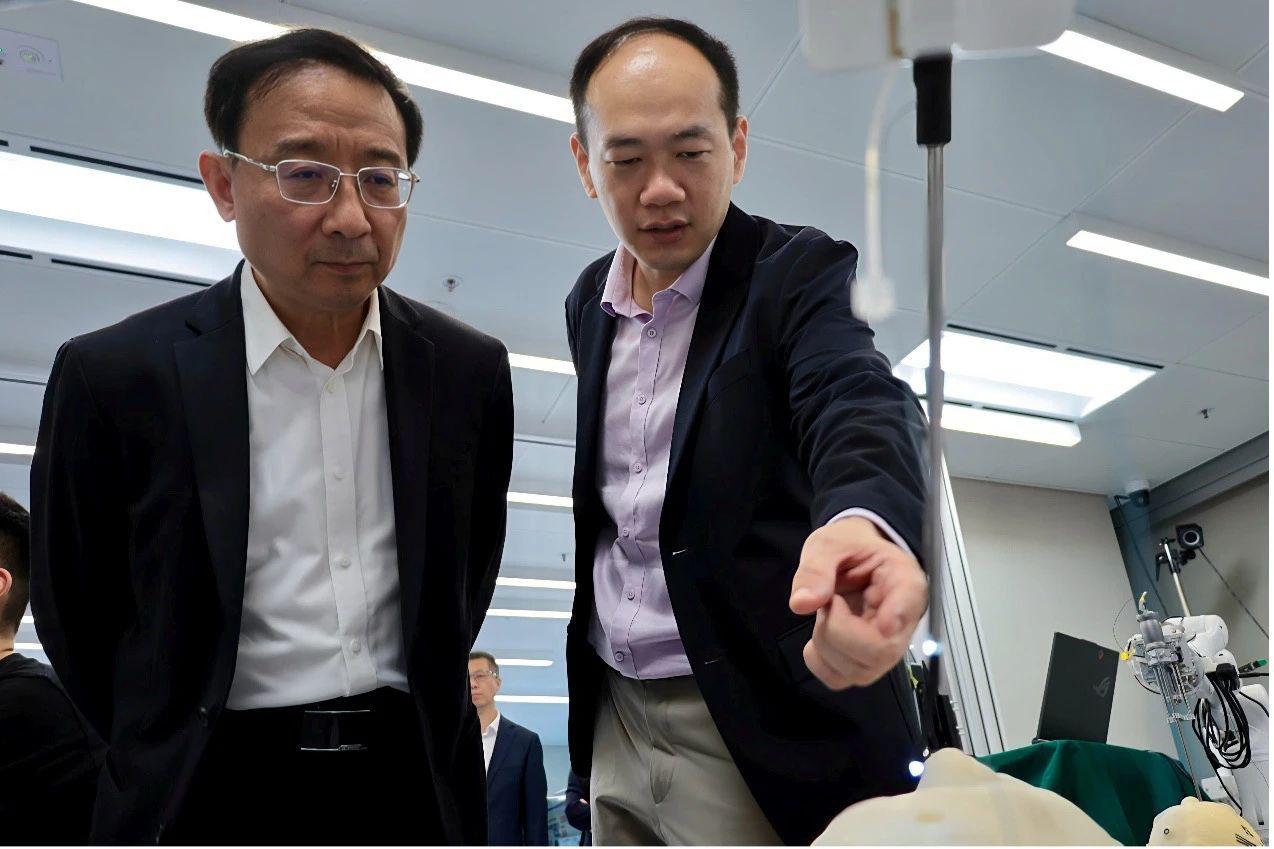 2025年5月22日上午,山东健康集团党委副书记、董事、总经理刘文立,山东健康颐养集团党委书记、董事长李会战,山东新华医疗器械股份有限公司总经理巩报贤,山东健康集团规划发展部部长牟乐海等山东医疗健康领军企业领导一行到访了中国科学院香港创新研究院人工智能与机器人创新中心(CAIR)。