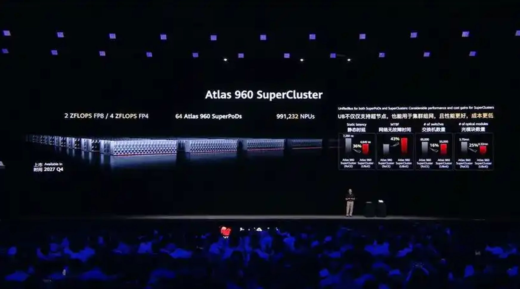 算力平台方面,华为超节点产品 Atlas 950 SuperPoD和Atlas 960 SuperPoD,分别支持8192及15488张昇腾卡,多项关键指标全面领先;超节点集群Atlas 950 SuperCluster和Atlas 960 SuperCluster,算力规模分别超过50万卡和达到百万卡。此外,其全球首个通用计算超节点TaiShan 950 SuperPoD,率先引入了超节点技术,能够彻底取代各种应用场景的大型机、小型机和Exadata数据库一体机。