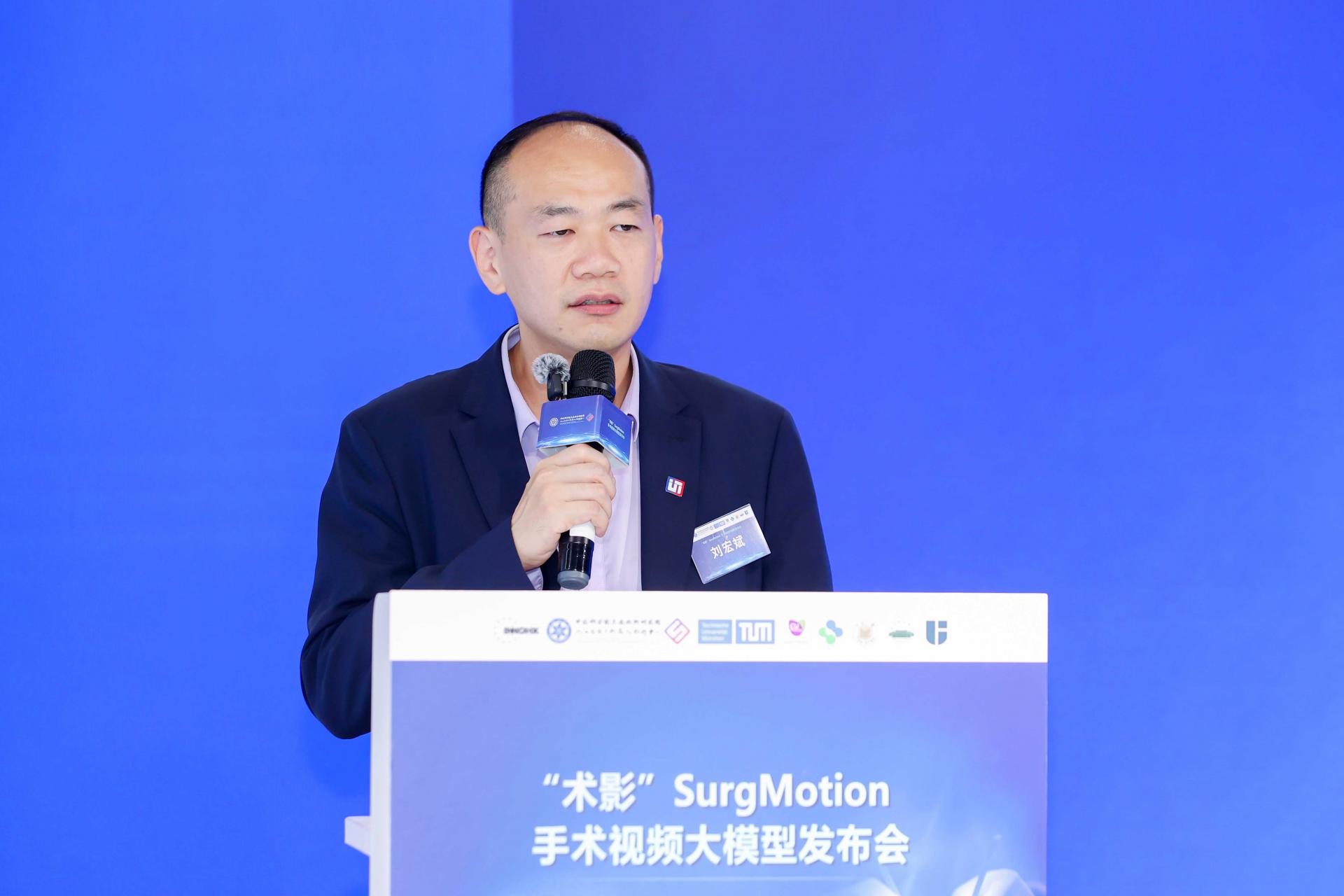 在致辞环节,刘宏斌研究员表示,去年CAIR发布了聆音超声大模型和多模态医疗AI大模型CARES 3.0,展现了持续创新的研发实力。今年我们隆重推出“术影”SurgMotion手术视频大模型,助力构建大湾区AI医疗的智慧生态。我们的研发始终以临床应用为核心目标,旨在赋能医生,造福患者,为构建更健康、更高效的医疗生态贡献力量。